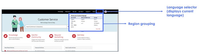 - Respectful personalization: each user, authenticated or not, is able to select their preferred language, time zone via the header. In the event you have a fully translated portal already, you can redirect those users to their preferred portal automatically. If you don’t see these options, locate the localization documentation online and reach out to your companies ServiceNow administrator