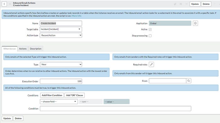 However, Customer Service offers out of the box inbound email FLOWS that take priority OVER actions in execution order and creates a much easier visualization of the inbound process to set up. Not to mention, you can delegate access for flow designer and business process owners and managers can learn how to create their own flows (use role ‘flow_designer’).