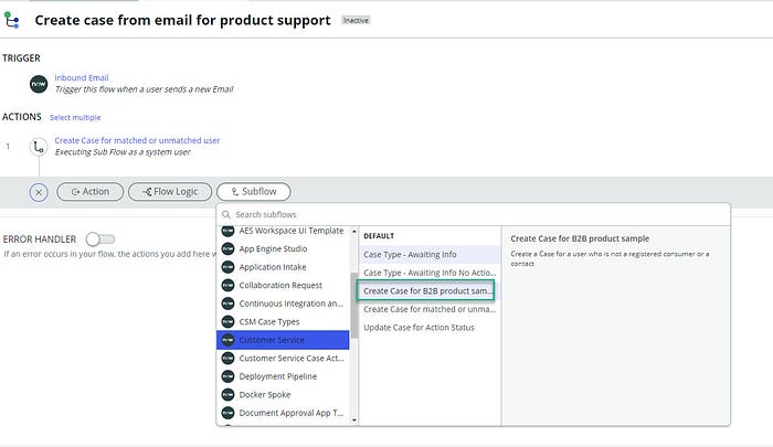 Going back to the low code theme, we see the use of inbound EMAIL flows in ServiceNow. Coming from the ITSM side of the house, I am mostly used to seeing actions.